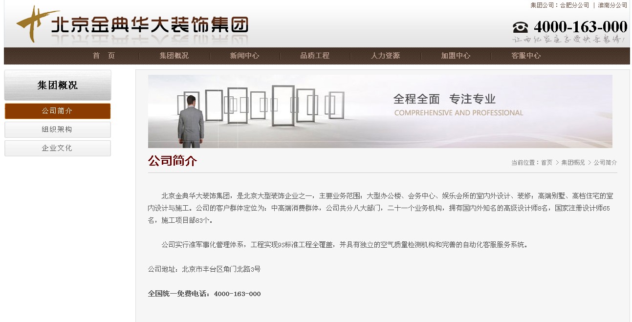 北京金典華裝飾建筑集團官方網站二級頁面截圖: