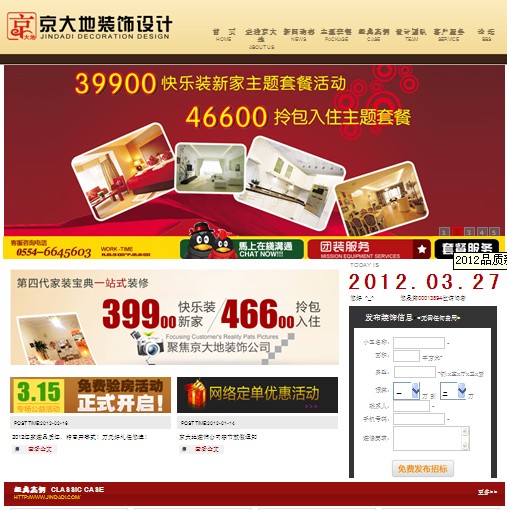 祝賀淮南京大地裝飾設(shè)計(jì)有限公司網(wǎng)站改版成功!新版網(wǎng)站以銷售為目的,內(nèi)容以簡潔大方。